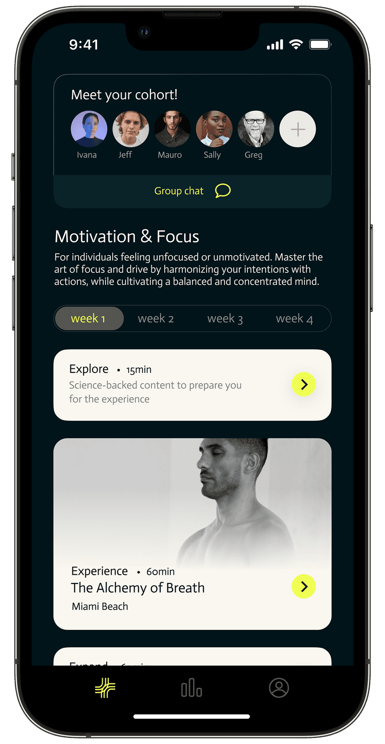 'I had an incredible experience with Plaey. Each week, there were thoughtfully curated activities, coupled with breathwork sessions. This comprehensive approach not only revitalized my energy but also led to a profound realization: I possess the ability to maintain control over my reactions, even when faced with challenging situations.'